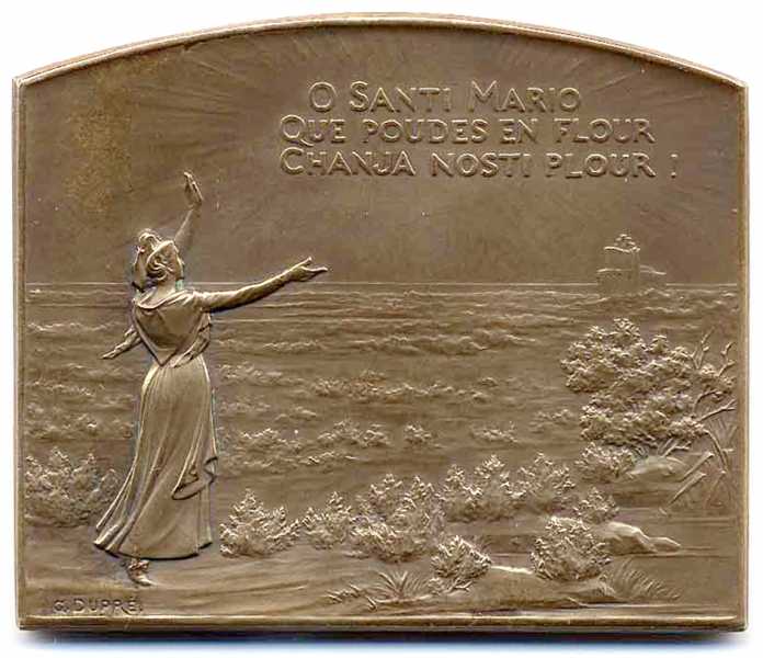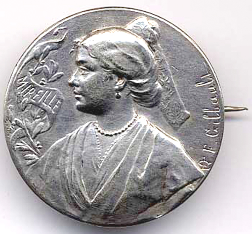 1906 - Cette nouvelle médaille rendant hommage à Mireille et à son poète a pour principal promoteur l’industriel Angélo Mariani, mécène et ami de F. Mistral. L’artiste graveur s’appelle Georges Dupré (1869-1909), fils et petit-fils de graveurs, dont l’excellence de son art le classera parmi l’un des plus grands médailleurs français de son époque.